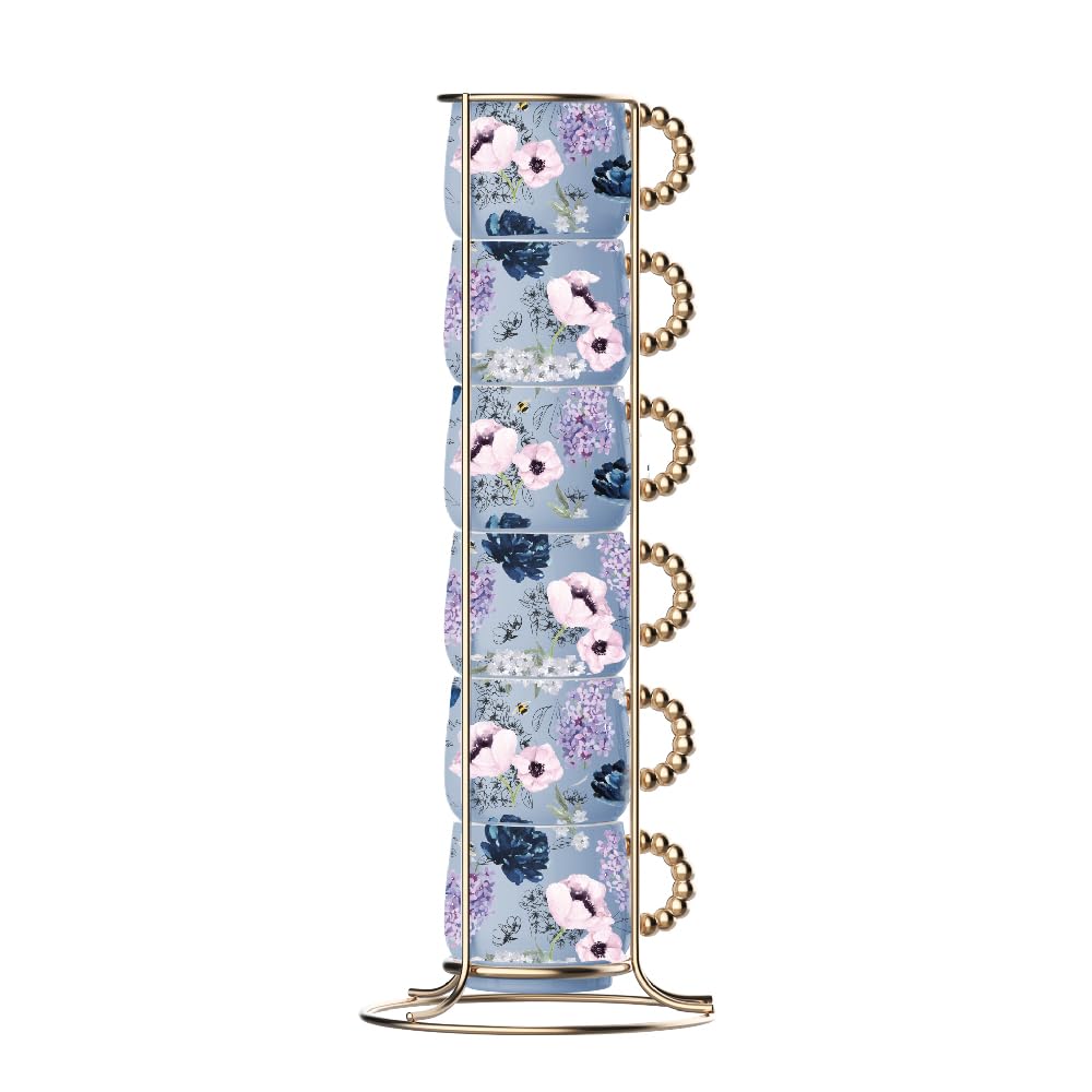Bialetti Set 6 Tazzine Impilabili Bridgerton, Porcellana, No Lavastoviglie, No Microonde, 60ml