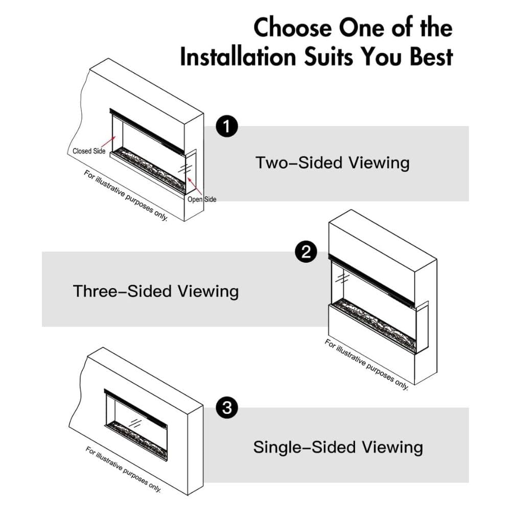 Camino elettrico da parete caminetto a incasso 3 Lati BOSTON130 L127 x P20 x H44