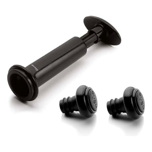 Il suo sistema sottovuoto permette di estrarre l’aria dalla bottiglia grazie alla pompetta e sigillarla con uno dei due appositi tappi inclusi. In questo modo si rallenta il processo di ossidazione, mantenendo più a lungo aroma, gusto e freschezza del vino.