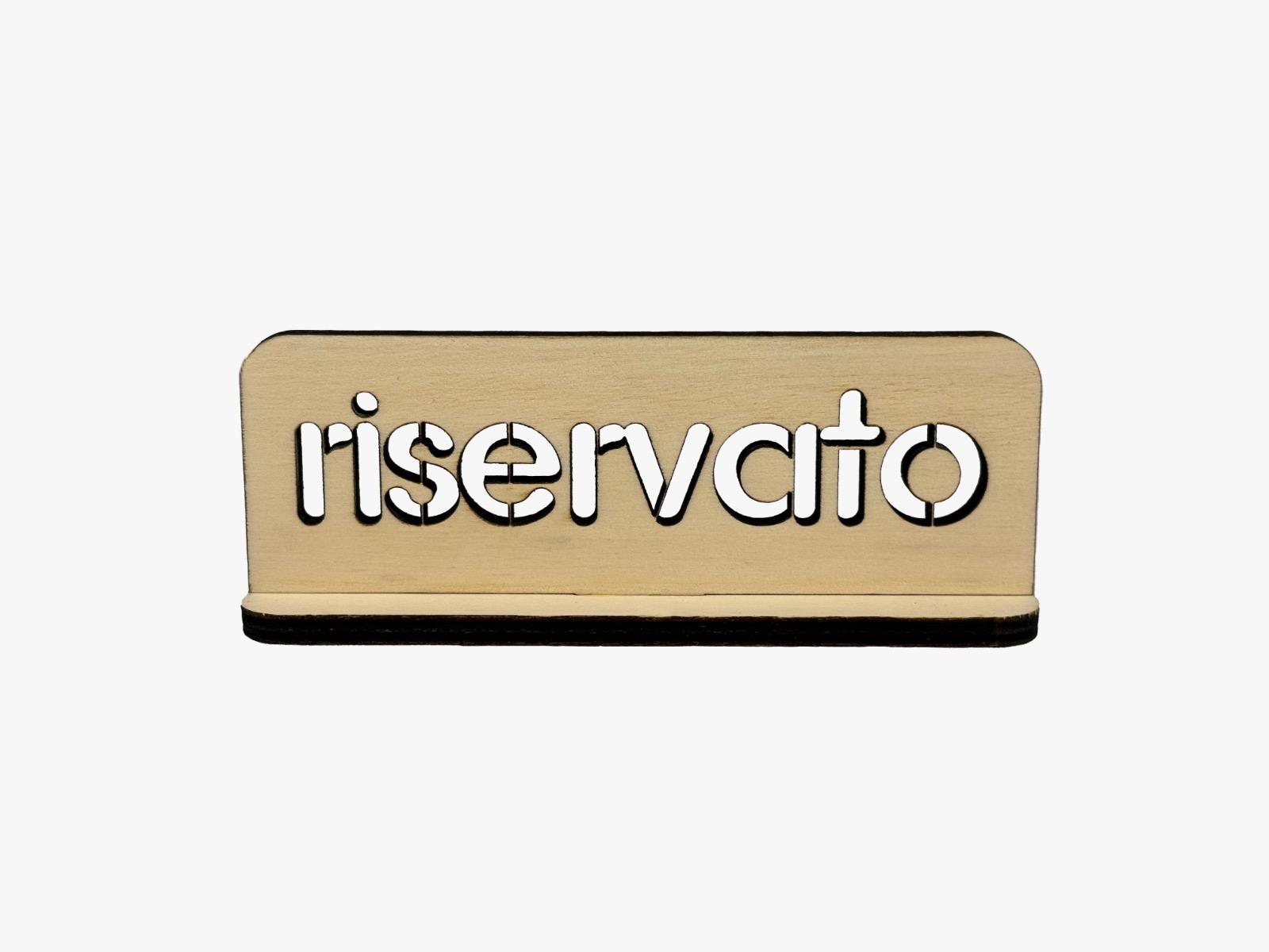 Segnatavolo in Legno 150x55mm per Ristotante Pizzeria con dicitura RISERVATO, intagliato, legno di Pioppo