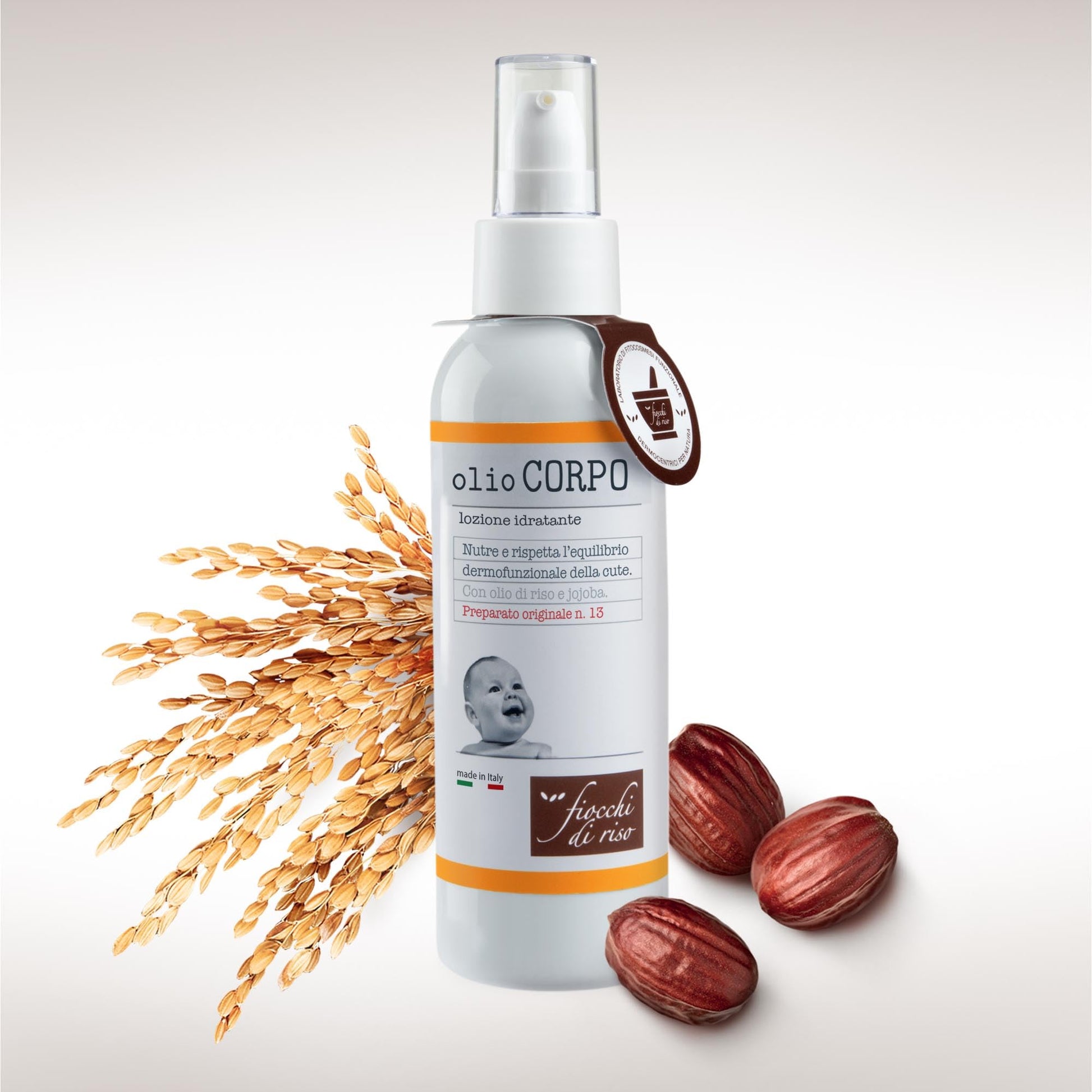 - L’Olio Corpo è il preparato Fiocchi di Riso che rispetta l’equilibrio dermofunzionale della pelle.