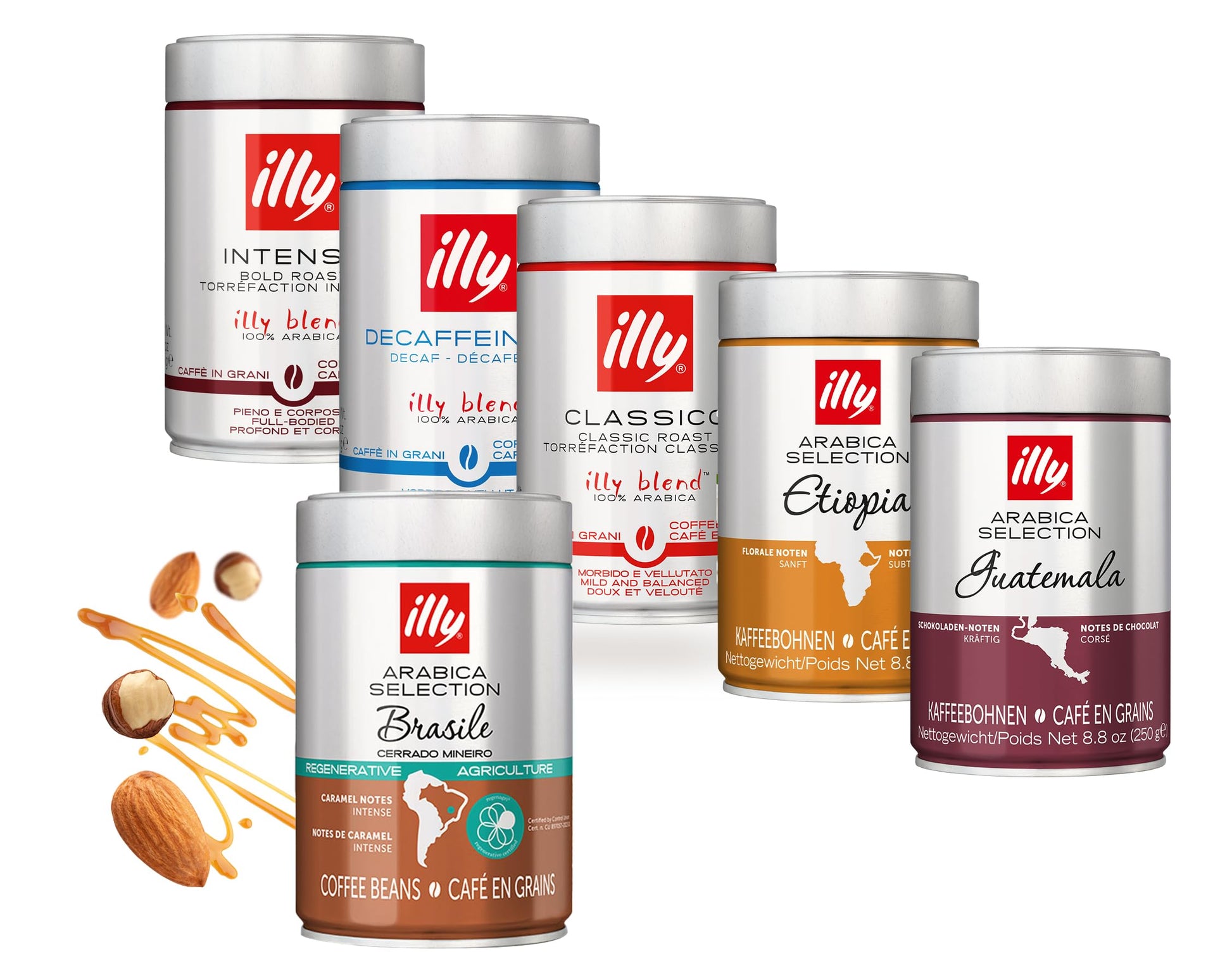ILLY - 6 Barattoli da 250 Grammi di Caffè in Grani | Scegli la Variante Desiderata - Arabica Selection