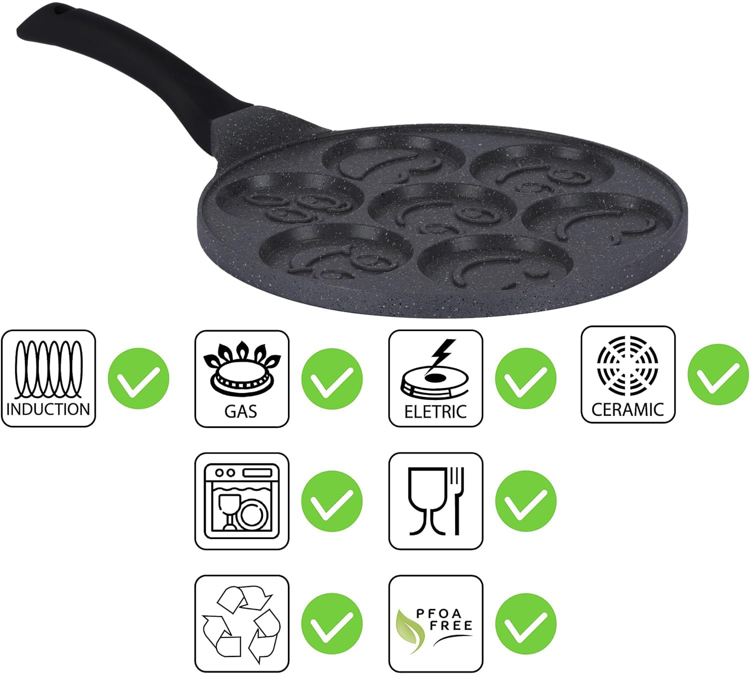 - DESIGN INNOVATIVO: Piastra per pancake con 7 divertenti emoticon smile, diametro 26 cm, ideale per preparare pancake decorativi e creativi