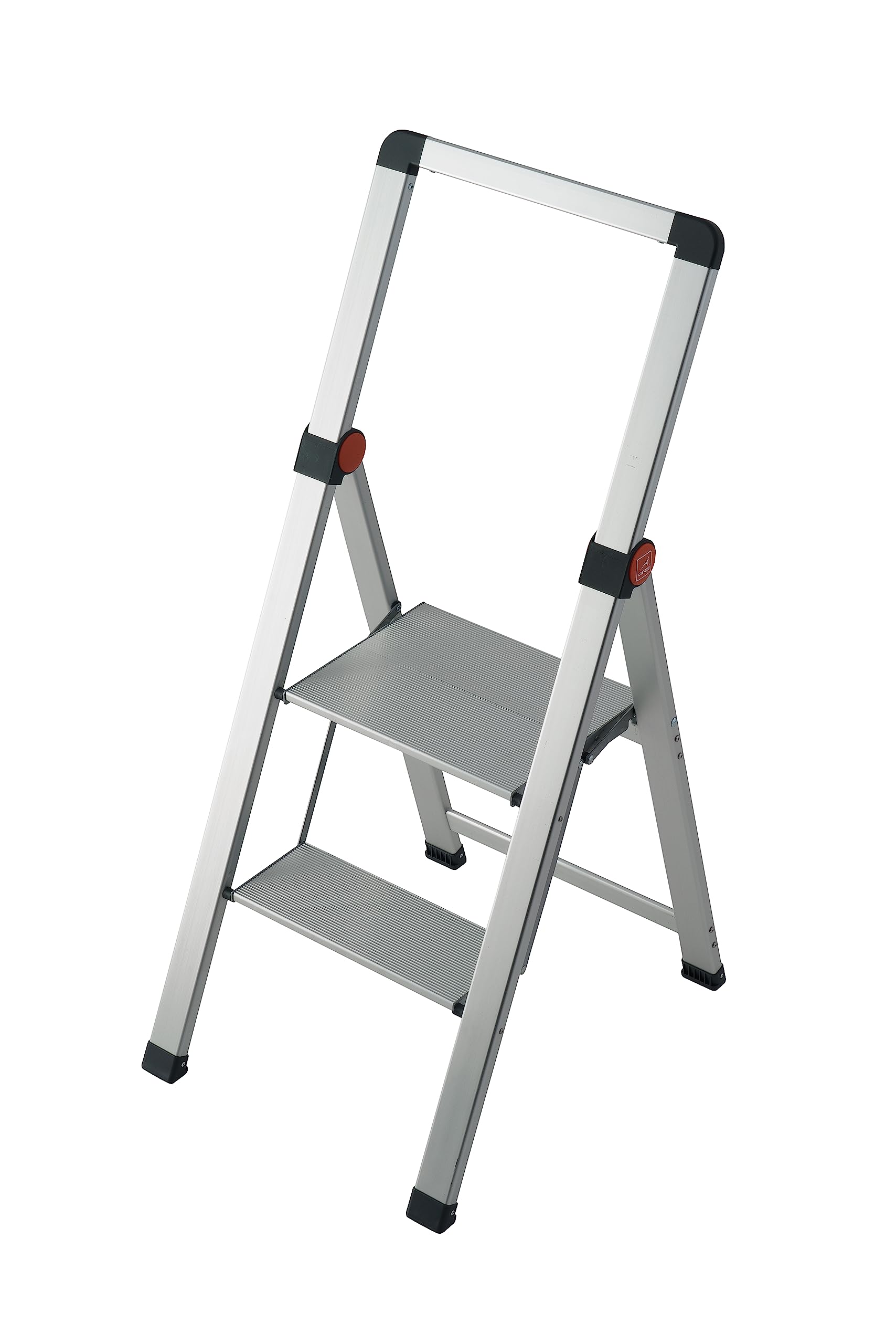 Dettagli: Lo sgabello SLIMSTEP con parapetto alto in alluminio2 gradini, permette di raggiungere un'altezza di lavoro di 2,45 metri, ha una portata di 150kg ed il prodotto ha una garanzia di 5 anni. E' presente una piattina unica di collegamento tra i gradini, che garantisce un'apertura e chiusura facile. La distanza dalla piattaforma alla sommità del parapetto è di 600mm e la profondità dei gradini è i 130mm. L'ingombro da chiuso è minimo, solo 50 mm! I piedini sono antiscivolo zigrinati, ed il prodotto è conforme alla norma EN14183