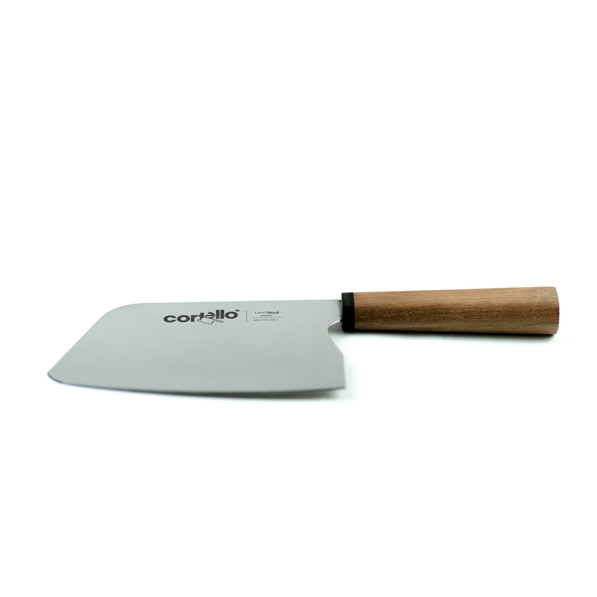 Dettagli: CORTELLO è un coltello da chef con funzionalità e qualità elevate combinate a precisione del taglio e praticità d'uso. CORTELLO è realizzato in acciaio speciale Nitro-B, sviluppato specificamente per ottenere elevate performance di taglio. Grazie all’aggiunta di azoto ed ad un accurato e particolare trattamento termico, questo speciale acciaio raggiunge durezze elevate, garantendo un’eccellente affilatura e prestazioni di taglio costanti nel tempo. Il manico di CORTELLO è realizzato a mano artigianalmente con legni di Noce ed Ebano Makassar. Interamente fatto in Italia